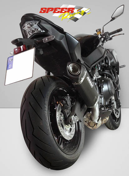 RVS zwarte einddemper met carbon eindkap en rvs verbindingspijp.
