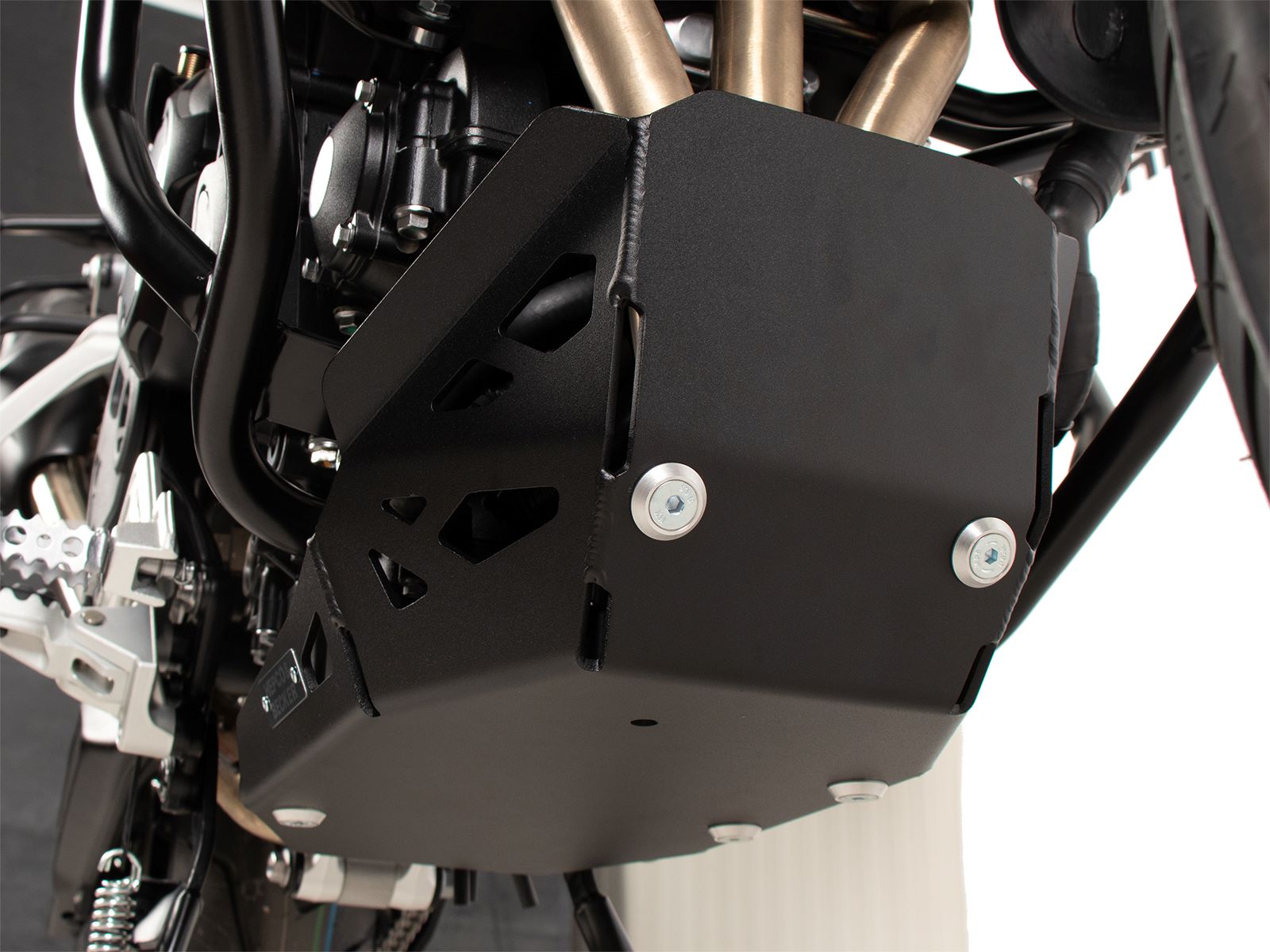 Deze carterplaat geeft de motor een echte off-road look en voorkomt o.a. steenslag tegen de onderzijde van het motorblok.