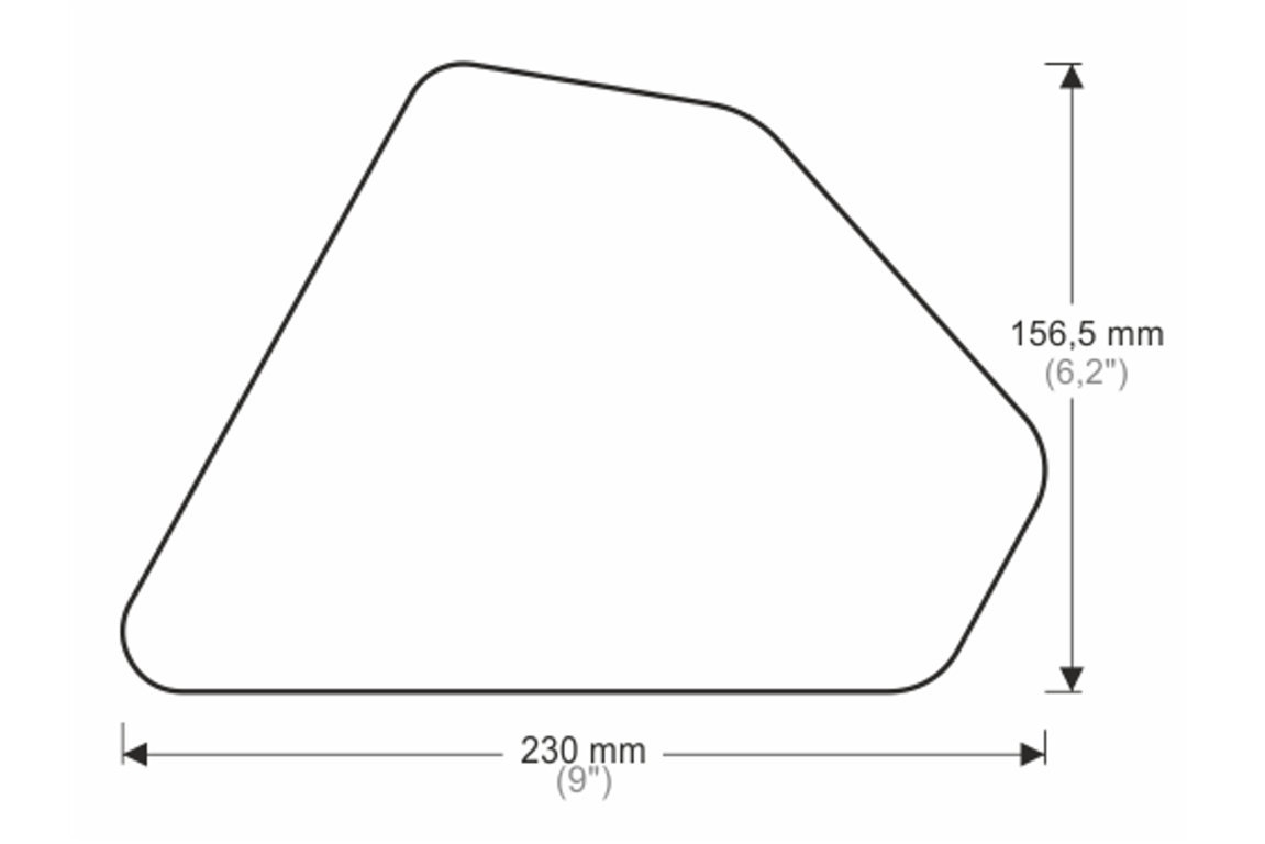 Hoogte 156.5mm, breedte 230mm.