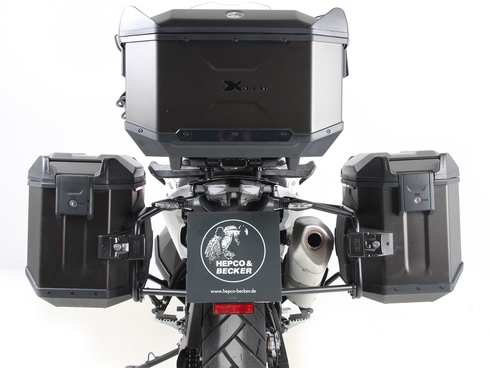 Hepco & Becker kofferrek voor vaste montage, de bijbehorende koffers worden geleverd met een afsluitbare snelkoppeling die het de-/monteren van de koffers zeer eenvoudig maakt.