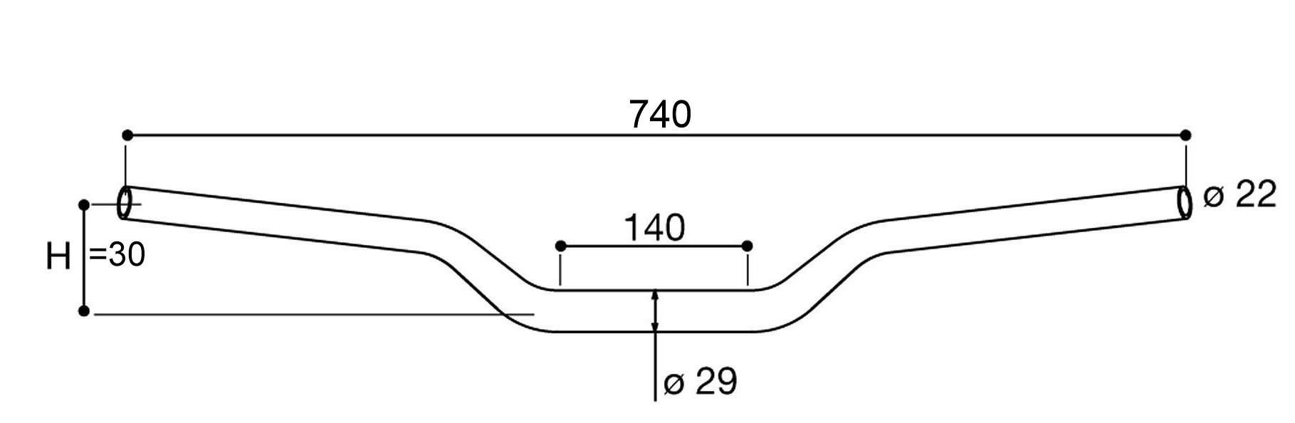 Stuuruiteinden zijn Ø 22mm, middenstuk is Ø 29mm, hoogte 30mm.