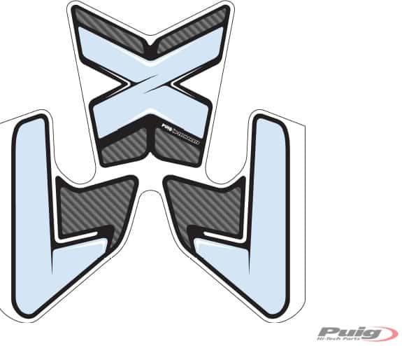 Puig 3-delige tankpad set met transparante en carbon look delen.